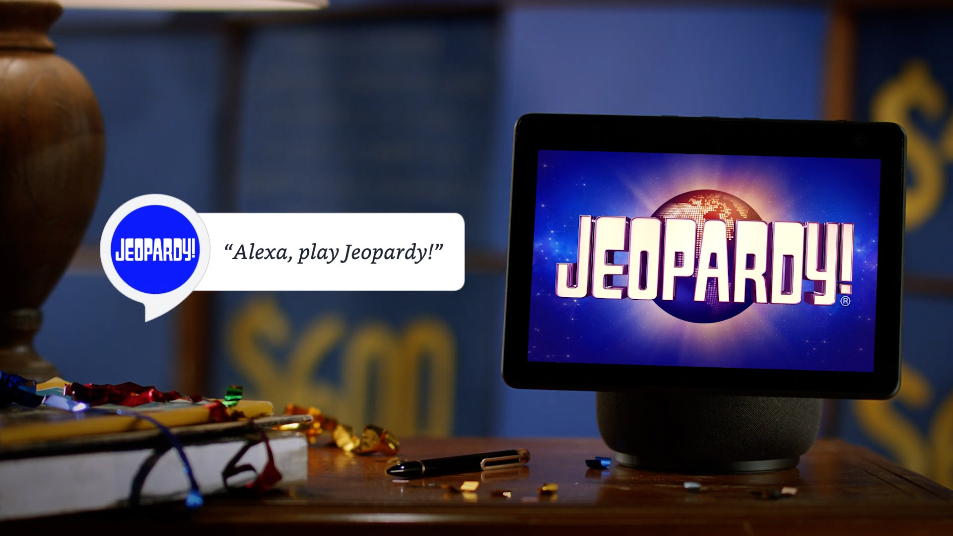 A playful aD created by All is Well for the Alexa Jeopardy App.